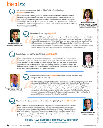 Named a Top Atlanta Doctor by his peers for 8 years in a row.