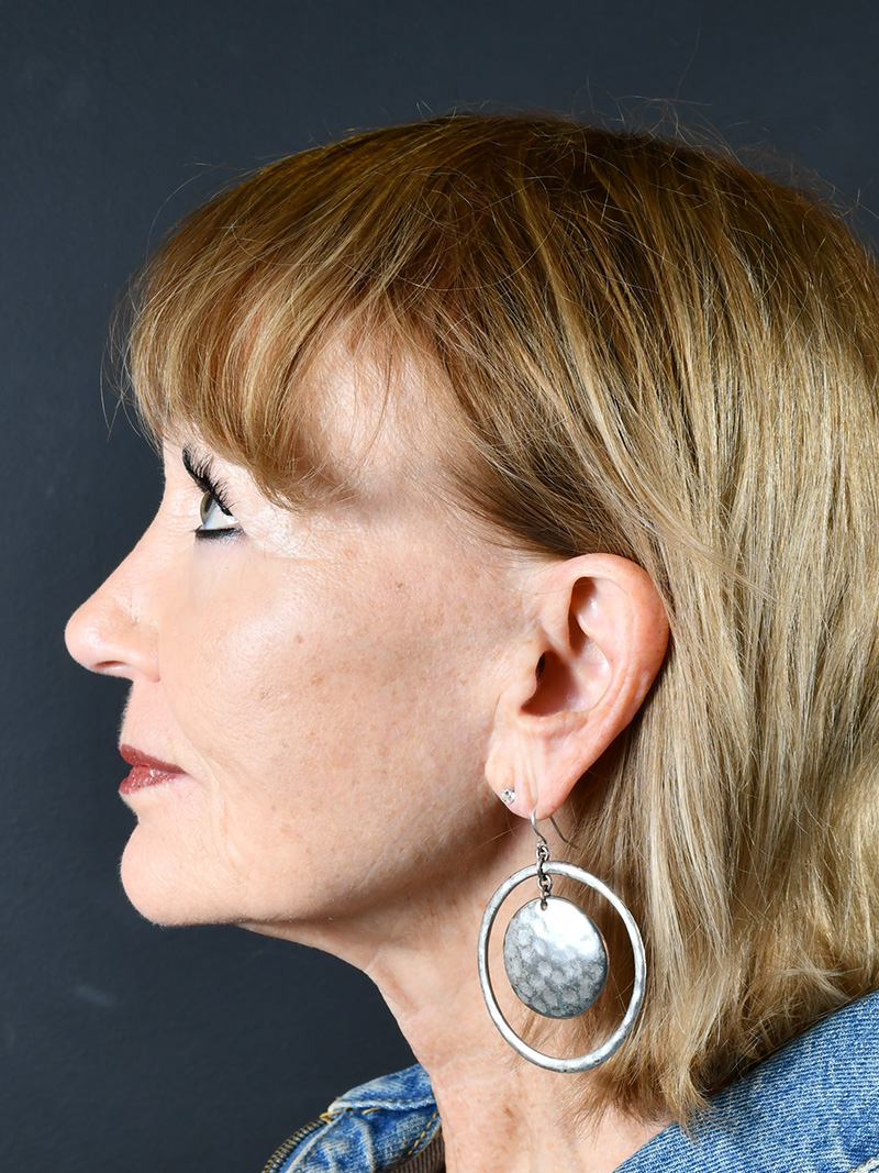 - 66 year old female who desires an improvement in lines around the mouth, nasolabial folds, marionette folds, and loose neck skin. The patient underwent a modified deep plane facelift, CO2 laser for lines around the mouth, and fat injections primarily to treat hollowing under the eyes and to treat volume loss around the mouth.