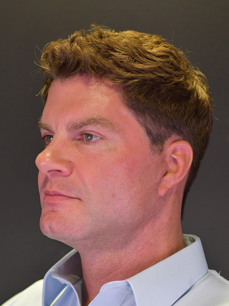 45 year old male starting to see early signs of aging in his face with low brows, heavy upper eyelids, drooping of facial tissues, worsening of nasolabial folds and marionette folds, as well as loss of jawline definition. The patient had tried using fillers before but found that they wore off quickly because of his metabolism. The patient underwent a lateral browlift to lift brows but maintain a natural look, upper eyelid blepharoplasty, lower eyelid CO2 laser, deep plane male facelift with neck liposuction, fat injection under the eyes, in the NL folds and marionette folds.