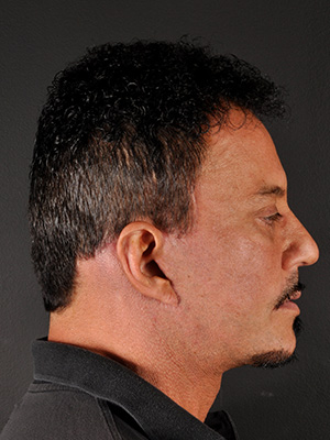 57-year-old male who had a previous facelift 10 years ago now presents with excess volume (filler) in the midface and mild loose skin along the jawline and neck. The patient would like all of the filler removed. Discussed with the patient that if all of the filler is dissolved, his skin will sag, and we will need to retighten his facial skin. Also, the patient is also bothered by his hump, overprojected nose, and his droopy tip. He likes the width of his nose on the frontal view and does not want to change this if possible. After images show the patient with revision facelift after dissolving filler in midface and in lower face to retighten jawline, neckline, and to improve the sagging skin created after dissolving filler. The patient also underwent an open rhinoplasty to remove the hump, lift the tip, and deproject the tip while maintaining the width of the nose on the frontal view.